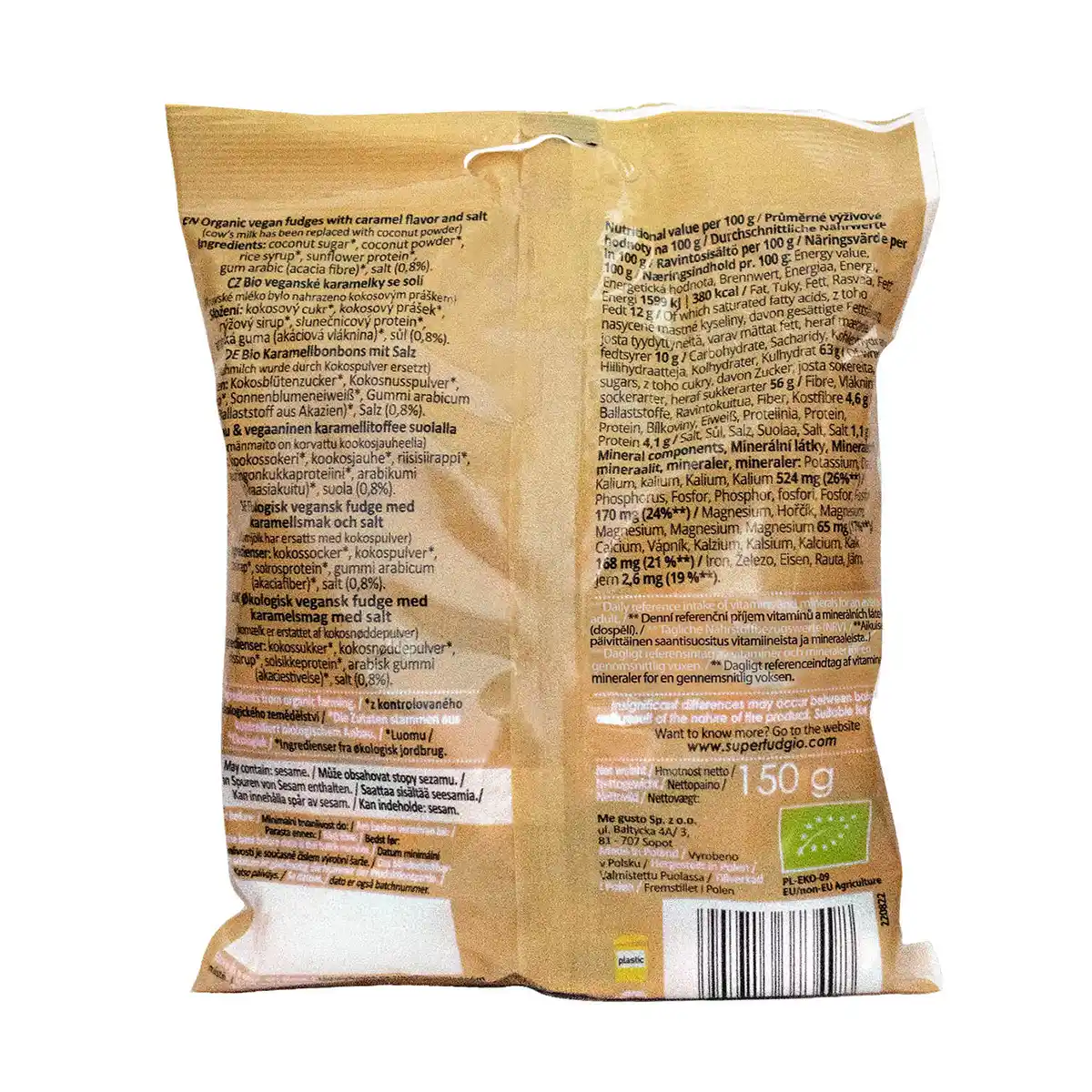 Ingredients: coconut sugar*, coconut powder*, rice syrup*, sunflower protein*, gum arabic (acacia fibre)*, salt (0,8%).