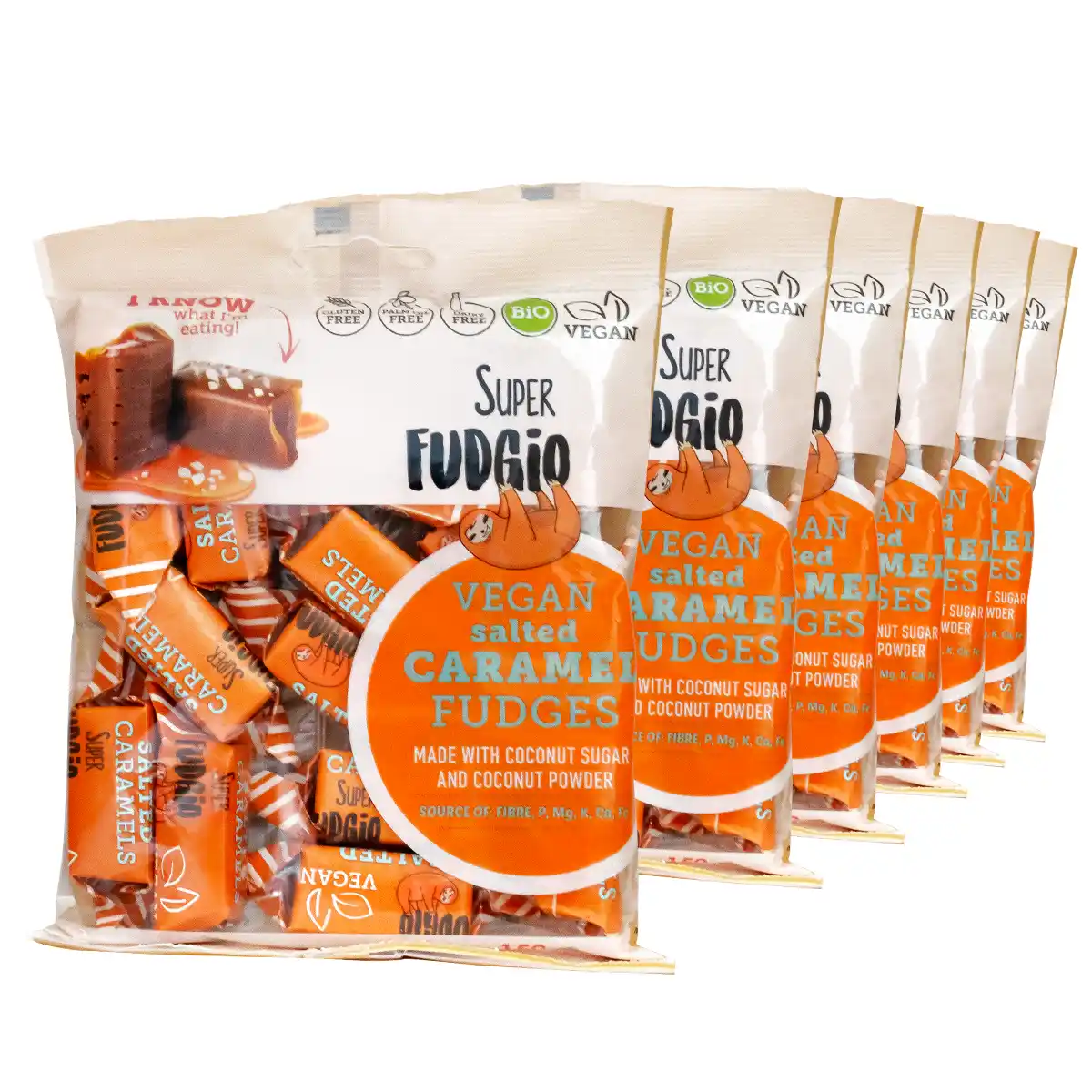 Set of organic vegan fudges with caramel flavor and salt