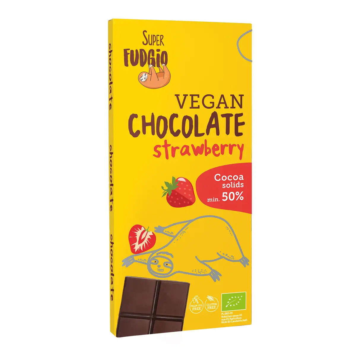 - Pyszna wegańska czekolada truskawkowa z prostym składem (80 g)